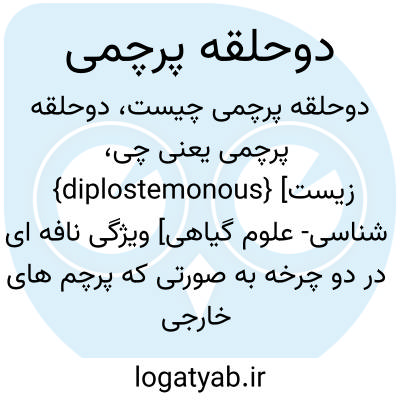 {diplostemonous} [زیست شناسی- علوم گیاهی] ویژگی نافه ای در دو چرخه به صورتی که پرچم های خارجی آن در مقابل کاسبرگ ها و پرچم های داخلی آن در مقابل گلبرگ ها قرار دارند