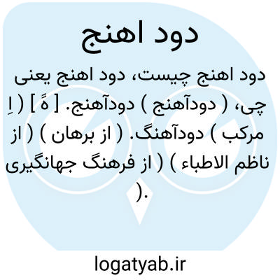 ( دود آهنج ) ( اسم ) ۱ - دود کش ( حمام مطبخ بخاری ) تنوره ( گلخن مطبخ ). ۲ - پارچه سفالی که برای گرفتن دوده جهت ساختن مرکب بالای چراغ تعبیه کنند.