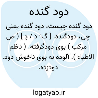 دودگنده. [ گ َ دَ / دِ ] ( ص مرکب ) بوی دودگرفته. ( ناظم الاطباء ). آلوده به بوی ناخوش دود. دودزده. به ناخوشی بویی دودآلوده شونده. ( یادداشت مؤلف ).