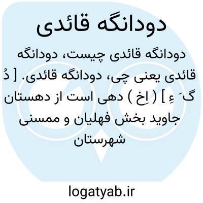 دودانگه قائدی. [ دُ گ َ ءِ ] ( اِخ ) دهی است از دهستان جاوید بخش فهلیان و ممسنی شهرستان کازرون. با 700 تن سکنه. آب آن از رودخانه شور است. ( از فرهنگ جغرافیایی ایران ج 7 ).