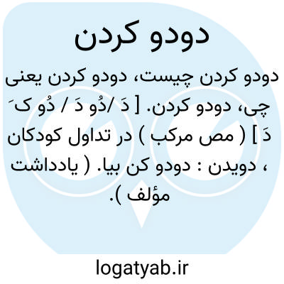 دودو کردن. [ دَ /دُو دَ / دُو ک َ دَ ] ( مص مرکب ) در تداول کودکان، دویدن: دودو کن بیا. ( یادداشت مؤلف ). بدوبدو کردن.