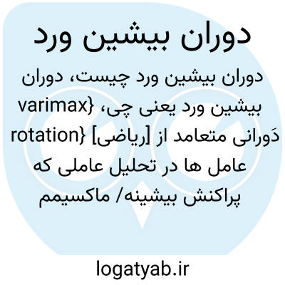 {varimax rotation} [ریاضی] دَورانی متعامد از عامل ها در تحلیل عاملی که پراکنش بیشینه/ ماکسیمم بین بارهای عاملی ایجاد کند و بدین ترتیب تفسیر عامل ها را معنی دارتر سازد متـ. دَوران واریماکس