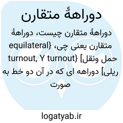 {equilateral turnout, Y turnout} [حمل ونقل ریلی] دوراهه ای که در آن دو خط به صورت یکنواخت و متقارن در دو جهت از یکدیگر جدا می شوند