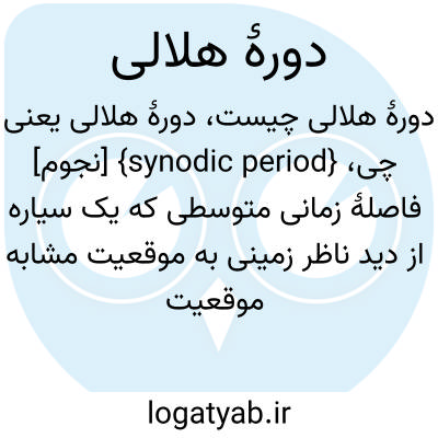 {synodic period} [نجوم] فاصلۀ زمانی متوسطی که یک سیاره از دید ناظر زمینی به موقعیت مشابه موقعیت قبلی نسبت به خورشید برسد