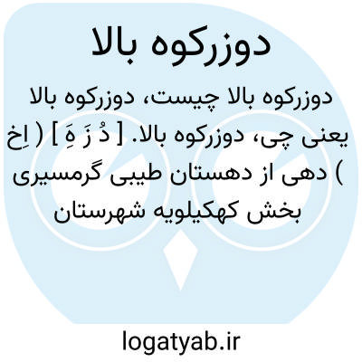 دوزرکوه بالا. [ دُ زَ هَِ ] ( اِخ ) دهی از دهستان طیبی گرمسیری بخش کهکیلویه شهرستان بهبهان، دارای 180تن سکنه. آب آن از چشمه تأمین می شود. ساکنین از طایفه طیبی هستند. ( از فرهنگ جغرافیایی ایران ج 6 ).