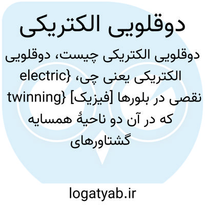 {electric twinning} [فیزیک] نقصی در بلورها که در آن دو ناحیۀ همسایه گشتاورهای الکتریکی پادموازی دارند
