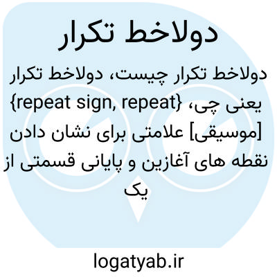 {repeat sign, repeat} [موسیقی] علامتی برای نشان دادن نقطه های آغازین و پایانی قسمتی از یک قطعۀ موسیقی که باید تکرار شود