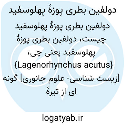 {Lagenorhynchus acutus} [زیست شناسی- علوم جانوری] گونه ای از تیرۀ دولفینیان و راستۀ آب بازسانان که رنگ بدن آنها سیاه یا بنفش تیره یا خاکستری است و از هر طرف بدن تا قاعدۀ دم نواری درخشان دارد