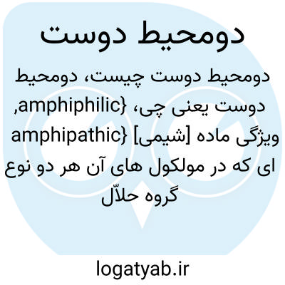 {amphiphilic, amphipathic} [شیمی] ویژگی ماده ای که در مولکول های آن هر دو نوع گروه حلاّل دوست و حلاّل گریز وجود داشته باشد