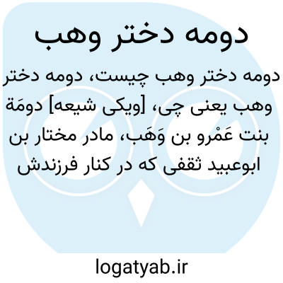 [ویکی شیعه] دومَة بنت عَمْرو بن وَهَب، مادر مختار بن ابوعبید ثقفی که در کنار فرزندش به خونخواهی امام حسین (ع) قیام کرد. وی سرانجام در جنگ مختار با مصعب بن زبیر کشته شد.