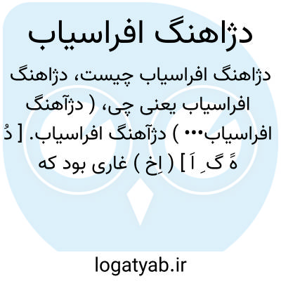 ( دژآهنگ افراسیاب••• ) دژآهنگ افراسیاب. [ دُ هََ گ ِ اَ ] ( اِخ ) غاری بود که افراسیاب بدانجا گریخته بود. ( برهان ). اصلا «هنگ افراسیاب » قصر آهنین زیرزمینی افراسیاب پادشاه تورانی بوده است ولی در شاهنامه فردوسی بصورت غاری در بالای کوهی معرفی شده، و از اوستا و کتب پهلوی بخوبی برمی آید که «هنگ » قصری بوده و دُژ بعنوان صفت بدین ترکیب افزوده شده است. ( حاشیه برهان ).