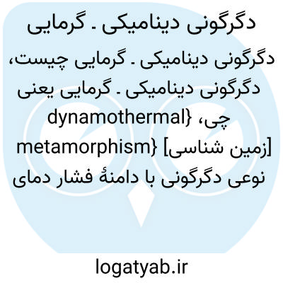 {dynamothermal metamorphism} [زمین شناسی] نوعی دگرگونی با دامنۀ فشار دمای وسیع که در آن فشار و تنش برشی جهت یافته نقش مؤثری دارد