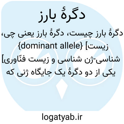 {dominant allele} [زیست شناسی-ژن شناسی و زیست فنّاوری] یکی از دو دگرۀ یک جایگاه ژنی که صفت مربوط به آن در حالت ناجور تخمی در رُخ نمود ظاهر می شود