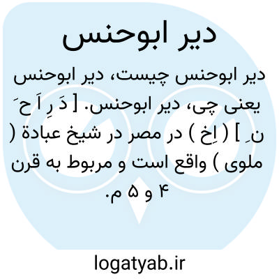 دیر ابوحنس. [ دَ رِ اَ ح َ ن ِ ] ( اِخ ) در مصر در شیخ عبادة ( ملوی ) واقع است و مربوط به قرن 4 و 5 م. است. ( از الموسوعة العربیة المیسرة ).