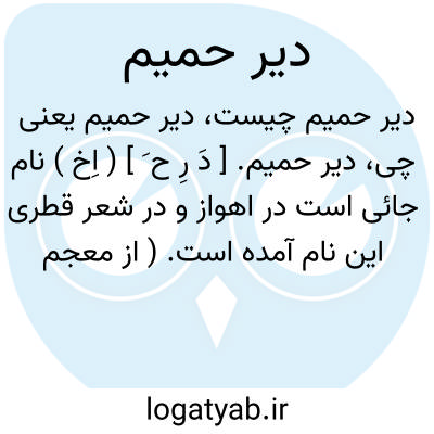 دیر حمیم. [ دَ رِ ح َ ] ( اِخ ) نام جائی است در اهواز و در شعر قطری این نام آمده است. ( از معجم البلدان ).
