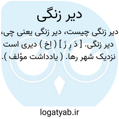 دیر زنگی. [ دَ رِ زَ ] ( اِخ ) دیری است نزدیک شهر رها. ( یادداشت مؤلف ).