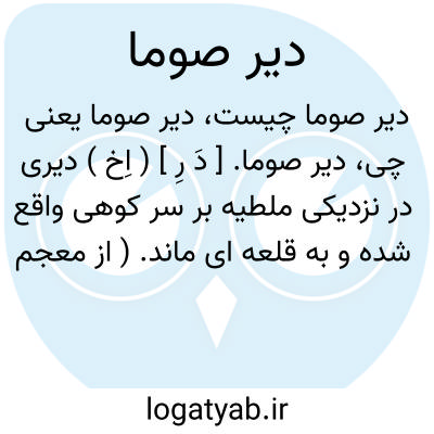 دیر صوما. [ دَ رِ ] ( اِخ ) دیری در نزدیکی ملطیه بر سر کوهی واقع شده و به قلعه ای ماند. ( از معجم البلدان ).