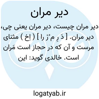 دیر مران. [ دَ رِ م ُرْ را ] ( اِخ ) مثنای مرست و آن که در حجاز است مَران است. خالدی گوید: این دیر نزدیک دمشق بر تپه ای است که مشرف بر مزارع زعفران و باغهای زیباست. بنای این دیر ازگچ ساخته شده و از سنگهای رنگارنگ مفروش شده دیری بزرگ است و در آن راهبان بسیارند. ( از معجم البلدان ).بنام دیر قدیم نیز خوانده میشده در سوریه نزدیک دمشق. دیری بزرگ بود و در عهد بنی امیه رونق داشت و در اطراف آن قریه ای بنا شد. ولیدبن عبدالملک در آنجا درگذشت ( 96 هَ. ق. ). احتمالا ولیدبن یزید آنجا را اقامتگاه خود قرار داد. و آن را دیر سمعان هم خوانده اند. ( از دائرة المعارف فارسی ). رجوع به دیر سمعان شود.