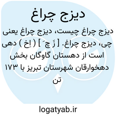 دیزج چراغ. [ زَ چ َ ] ( اِخ ) دهی است از دهستان گاوگان بخش دهخوارقان شهرستان تبریز با 173 تن سکنه. ( از فرهنگ جغرافیائی ایران ج 4 ).