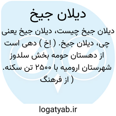 دیلان جیخ. ( اِخ ) دهی است از دهستان حومه بخش سلدوز شهرستان ارومیه با 2500 تن سکنه. ( از فرهنگ جغرافیائی ایران ج 4 ).