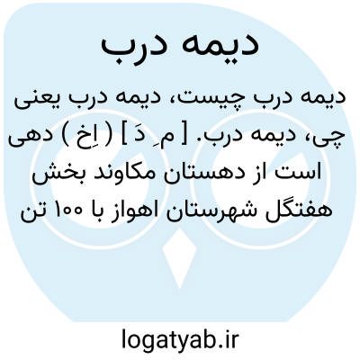 دیمه درب. [ م ِ دَ ] ( اِخ ) دهی است از دهستان مکاوند بخش هفتگل شهرستان اهواز با 100 تن سکنه. ( از فرهنگ جغرافیائی ایران ج 6 ).