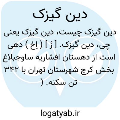 لغت نامه دهخدا دین گیزک. [ زَ ] ( اِخ ) دهی است از دهستان افشاریه ساوجبلاغ بخش کرج شهرستان تهران با 342 تن سکنه. ( از فرهنگ جغرافیائی ایران ج 1 ).