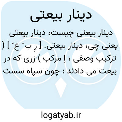 دینار بیعتی. [ رِ ب َ ع َ ] ( ترکیب وصفی، اِ مرکب ) زری که در بیعت می دادند: چون سپاه سست کاری ایشان همی دیدند و دینار بیعتی بدیشان رسید خاموش کردند. ( تاریخ سیستان ). رجوع به همین ترکیب در ذیل کلمه بیعت شود.
