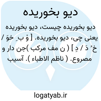 دیو بخوریده. [ وْ ب ِ خوَ / خ ُ دَ / دِ ] ( ن مف مرکب )جن دار و مصروع. ( ناظم الاطباء ). آسیب زده و پری زده. ( آنندراج ). مخبل. ( السامی فی الاسامی چاپ عکسی ص 73 ). الذی مسه الشیطان باذی. ( حاشیه نسخه ای از السامی ).