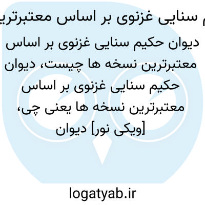 [ویکی نور] دیوان حکیم سنایی غزنوی، به زبان فارسی، حاوی مجموعه اشعار عرفانی ابوالمجد، مجدود بن آدم سنایی است. این مجموعه، از ارزش ادبی و فرهنگی و عرفانی والا برخوردار است.