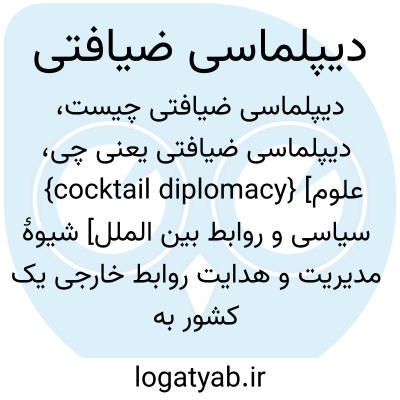 {cocktail diplomacy} [علوم سیاسی و روابط بین الملل] شیوۀ مدیریت و هدایت روابط خارجی یک کشور به دست نمایندگان رسمی آن کشور در مهمانی های نیمه رسمی