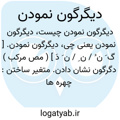 دیگرگون نمودن. [ گ َ ن ُ / ن ِ / ن َ دَ ] ( مص مرکب ) دگرگون نشان دادن. متغیر ساختن: چهره ها را چون صفحه کتاب دیگرگون نمود. ( ترجمه تاریخ یمینی ).