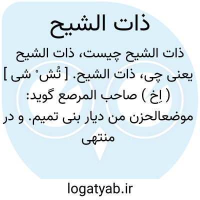 ذات الشیح. [ تُش ْ شی ] ( اِخ ) صاحب المرصع گوید: موضعالحزن من دیار بنی تمیم. و در منتهی الارب آید: موضعی است در دیار بنی یربوع که در آن گیاه شیح بسیار روید.