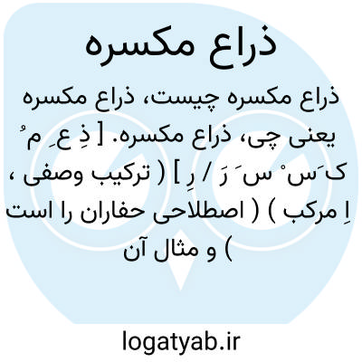 ذراع مکسره. [ ذِ ع ِ م ُ ک َس ْ س َ رَ / رِ ] ( ترکیب وصفی، اِ مرکب ) ( اصطلاحی حفاران را است ) و مثال آن: ده ذراع طول در دو ذراع عرض در پنج ذراع عمق صد ذراع مکسره شود.