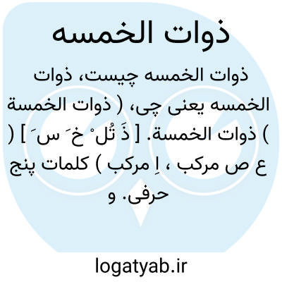 ( ذوات الخمسة ) ذوات الخمسة. [ ذَ تُل ْ خ َ س َ ] ( ع ص مرکب، اِ مرکب ) کلمات پنج حرفی. و الواو لایجی ةء فی ذوات الخمسة.