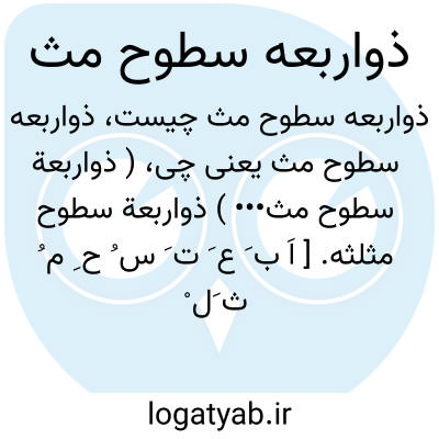 ( ذواربعة سطوح مث••• ) ذواربعة سطوح مثلثه. [ اَ ب َ ع َ ت َ س ُ ح ِ م ُ ث َل ْ ل َ ث َ ] ( ع ص مرکب، اِ مرکب ) حجمی دارای چهار سطح مثلث. چهار وجهی.ذواربعة سطوح مثلثه