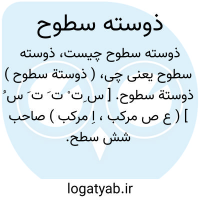 ( ذوستة سطوح ) ذوستة سطوح. [ س ِت ْ ت َ ت َ س ُ ] ( ع ص مرکب، اِ مرکب ) صاحب شش سطح. خداوند شش روی. شش وجهی.