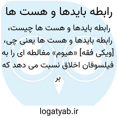 [ویکی فقه] «هیوم» مغالطه ای را به فیلسوفان اخلاق نسبت می دهد که بر اساس آن استدلال های اخلاقی فیلسوفان نتایجی در بر دارد که مفهوم «باید» در آن ها به کار رفته است. در حالی که این مفهوم در هیچ یک از مقدمات استدلال وجود ندارد؛ زیرا مقدمات آن تماما به «هست ها» مربوط بوده و مفادشان «هست» و «نیست» هاست. بر این اساس استدلال از «هست» بر «باید» و برقراری ارتباط منطقی بین گزاره های علمی یا فلسفی و گزاره های ارزشی یا اخلاقی مغالطه است.