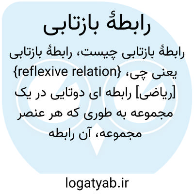 {reflexive relation} [ریاضی] رابطه ای دوتایی در یک مجموعه به طوری که هر عنصر مجموعه، آن رابطه را با خودش داشته باشد