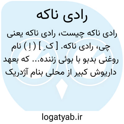 رادی ناکه. [ ک ِ ] ( اِ ) نام روغنی بدبو با بوئی زننده... که بعهد داریوش کبیر از محلی بنام آژدریک کا نزدیک شوش از چاه استخراج میکردند و ظاهراً همان نفت بوده است. ( تاریخ ایران باستان ج 1 ص 682 ).