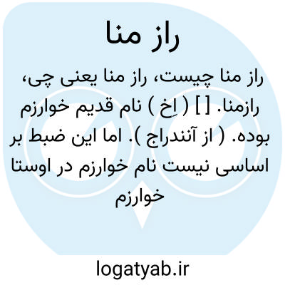 رازمنا. [ ] ( اِخ ) نام قدیم خوارزم بوده. ( از آنندراج ). اما این ضبط بر اساسی نیست نام خوارزم در اوستا خوارزم و در کتیبه های هخامنشی ( بپارسی باستان ) هوارزمیش آمده است. ( مقدمه ج 1 برهان چ معین ).