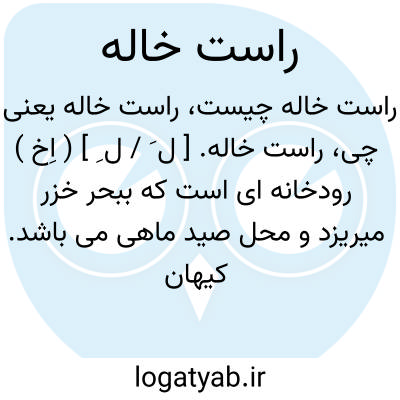 راست خاله. [ ل َ / ل ِ ] ( اِخ ) رودخانه ای است که ببحر خزر میریزد و محل صید ماهی می باشد. کیهان گوید: رودهایی که از تولم گذشته وارد مرداب میشوند اغلب به اسم خاله معروف است مانند راست خاله، نوخاله... که همه دارای ماهی هستند. ( جغرافیای سیاسی کیهان ص 67 ).