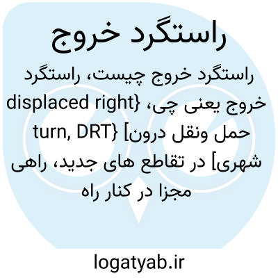 {displaced right turn, DRT} [حمل ونقل درون شهری] در تقاطع های جدید، راهی مجزا در کنار راه اصلی که امکان تردد خودروهایی را که قصد گردش به راست دارند، بدون مزاحمت برای دیگر خودروها فراهم می کند