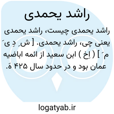 راشد یحمدی. [ ش ِ دِ ی َ م َ ] ( اِخ ) ابن سعید از ائمه اباضیه عمان بود و در حدود سال 425 هَ. ق. پس از وفات خلیل بن شاذان با او بیعت کردند. راشد عاقل، مآل اندیش و دانای دین بود، با ادب سرّ و سری داشت و شعر نیکو میگفت. وی بسال 445 هَ. ق. بدورد زندگی گفت. ( از اعلام زرکلی ج 3 چ جدید ).