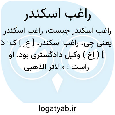 راغب اسکندر. [ غ ِ اِ ک َ دَ ] ( اِخ ) وکیل دادگستری بود. او راست: «الاثر الذهبی للمرحوم عطیه بک وهبی » که شامل تحقیقات اوست و از مقالات و خطبه هایی که در علم و ادب و تاریخ و آثار و تربیت زنان نوشته گردآوری شده است. ( از معجم المطبوعات ص 132 ).