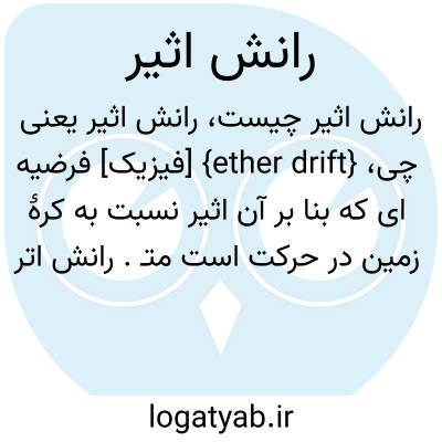 {ether drift} [فیزیک] فرضیه ای که بنا بر آن اثیر نسبت به کرۀ زمین در حرکت است متـ. رانش اتر