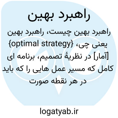 {optimal strategy} [آمار] در نظریۀ تصمیم، برنامه ای کامل که مسیر عمل هایی را که باید در هر نقطه صورت گیرد مشخص می کند تا بازدهی پولی یا مطلوبیت موردانتظار در بهترین وضعیت ممکن حاصل شود