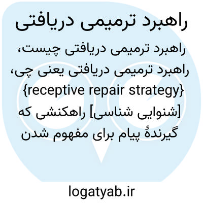 {receptive repair strategy} [شنوایی شناسی] راهکنشی که گیرندۀ پیام برای مفهوم شدن پیام ارتباطی به کار می برد