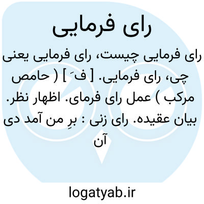 رای فرمایی. [ ف َ ] ( حامص مرکب ) عمل رای فرمای. اظهار نظر. بیان عقیده. رای زنی: