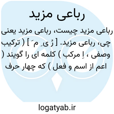 رباعی مزید. [ رُ ی ِ م َ ] ( ترکیب وصفی، اِ مرکب ) کلمه ای را گویند ( اعم از اسم و فعل ) که چهار حرف اصلی با یک یا چند حرف زاید داشته باشد: