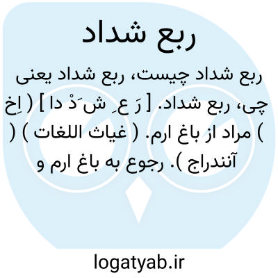ربع شداد. [ رَ ع ِ ش َدْ دا ] ( اِخ ) مراد از باغ ارم. ( غیاث اللغات ) ( آنندراج ). رجوع به باغ ارم و ارم شود.